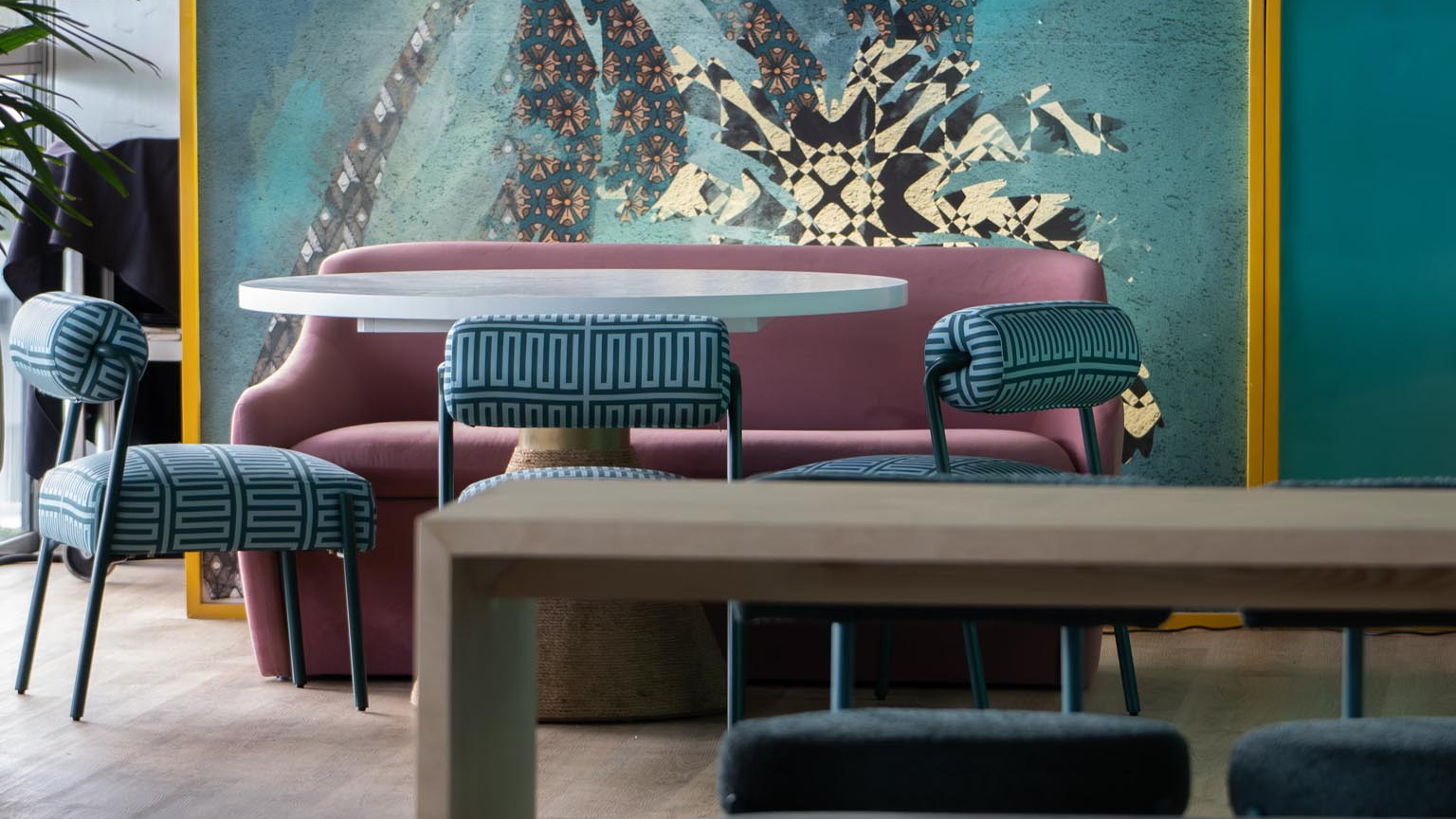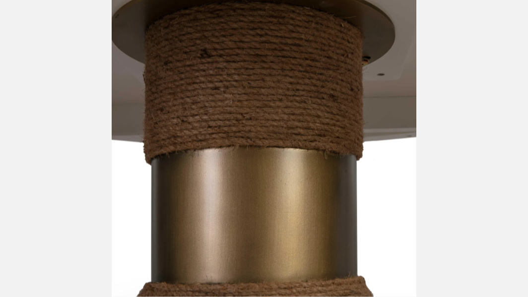 Coastal elements blend swimmingly with the modern silhouette of the Koni Dining Table. Featuring jute rope, light oak top and brushed gold detail.