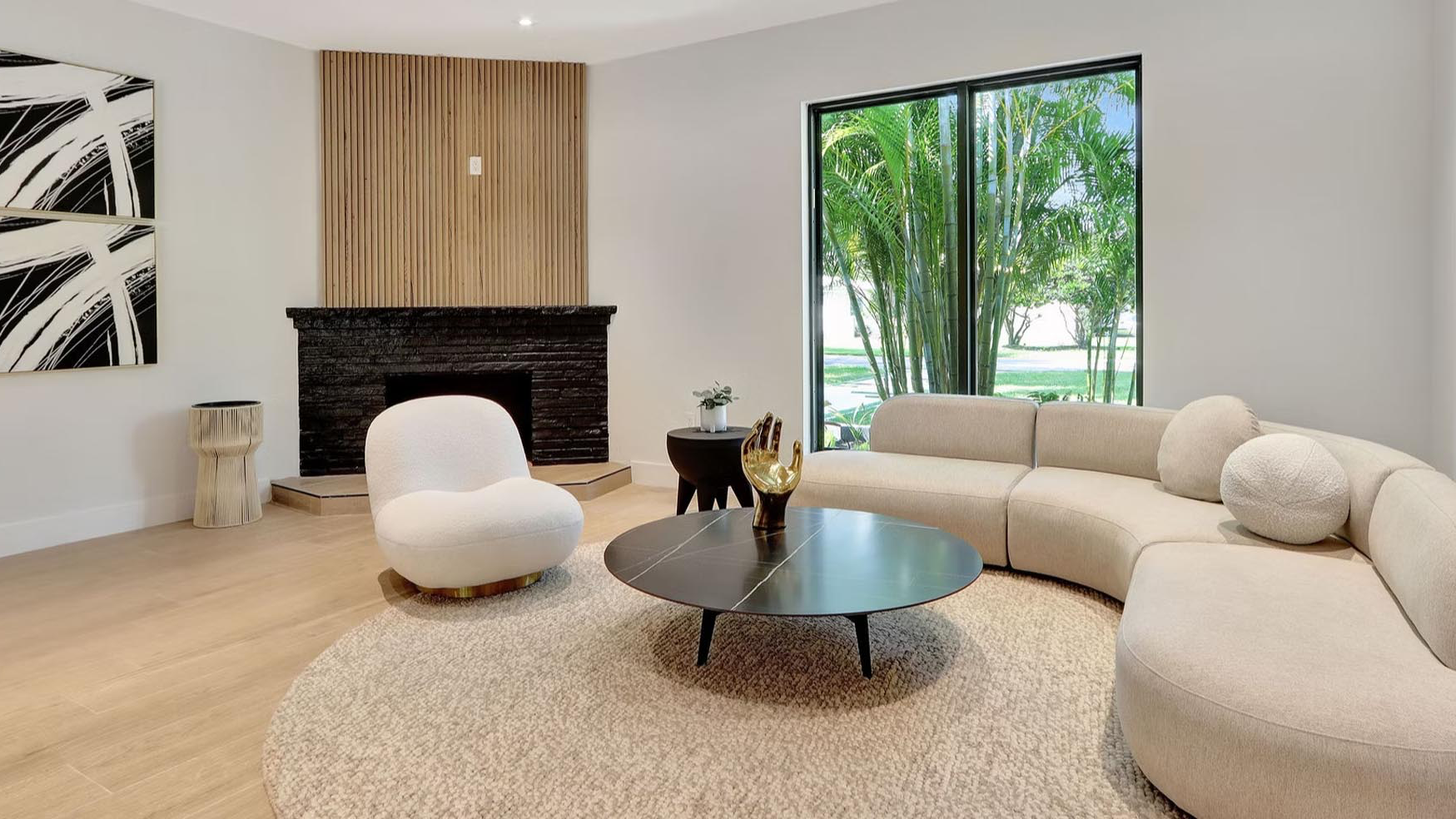 This chic and comfortable chair combines Modern design with the luxurious texture of boucl upholstery.