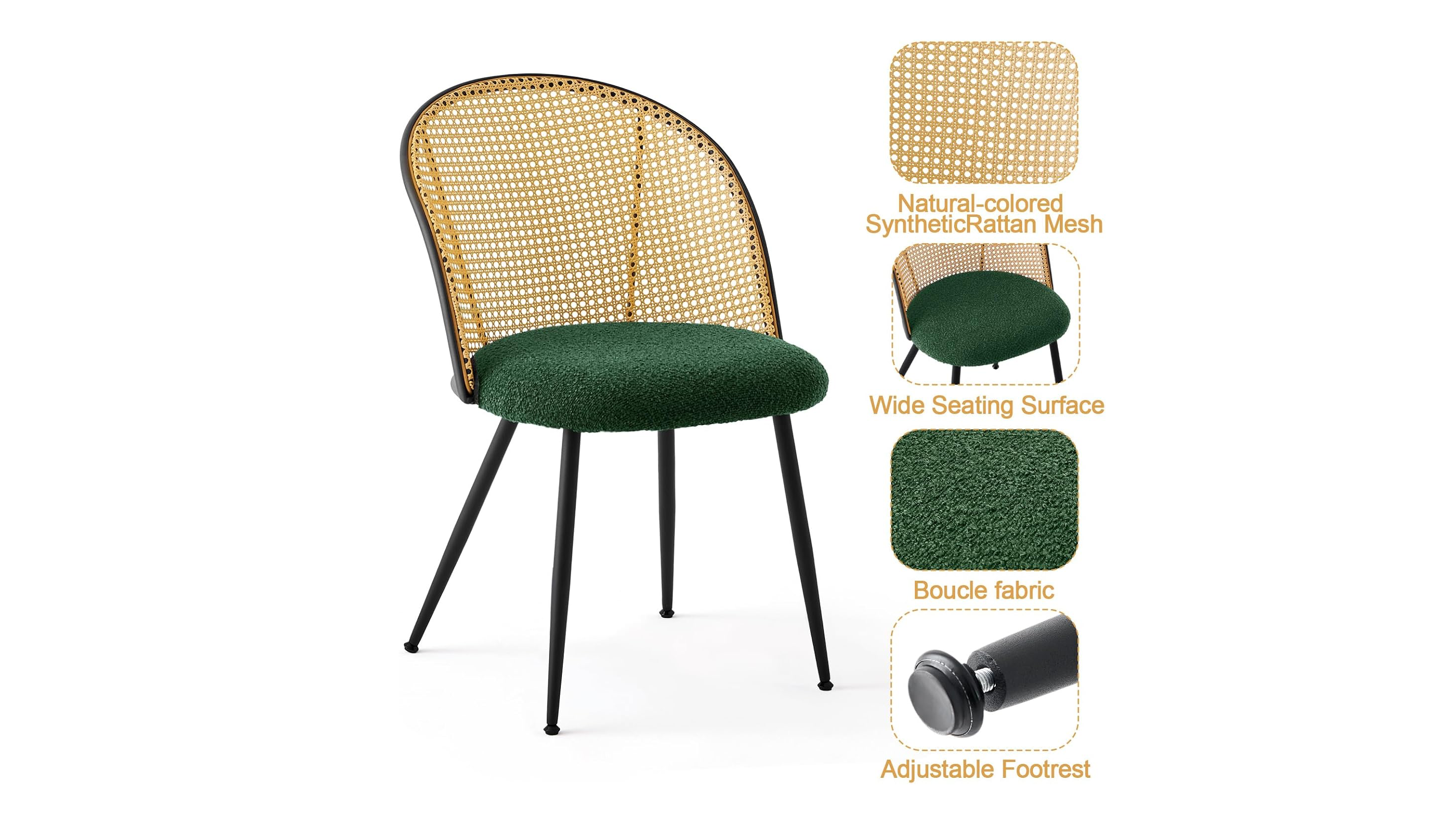 Enjoy this dining chairs, with their sleek design and powered-coated black metal legs. The exquisitely crafted rattan hollow back adds a delicate touch of natural beauty, creating an idyllic atmosphere that evokes classic charm Use: Indoor, Residential Disclaimer: Due to different monitor settings, we cannot guarantee that the color you see on your screen is an exact representation of the actual product color/s.