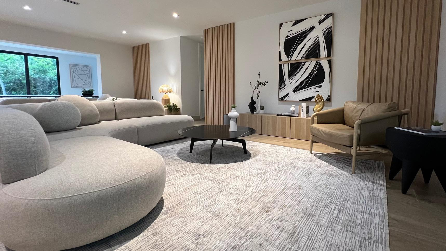 boasting a sleek aesthetic and versatile neutral upholstery.