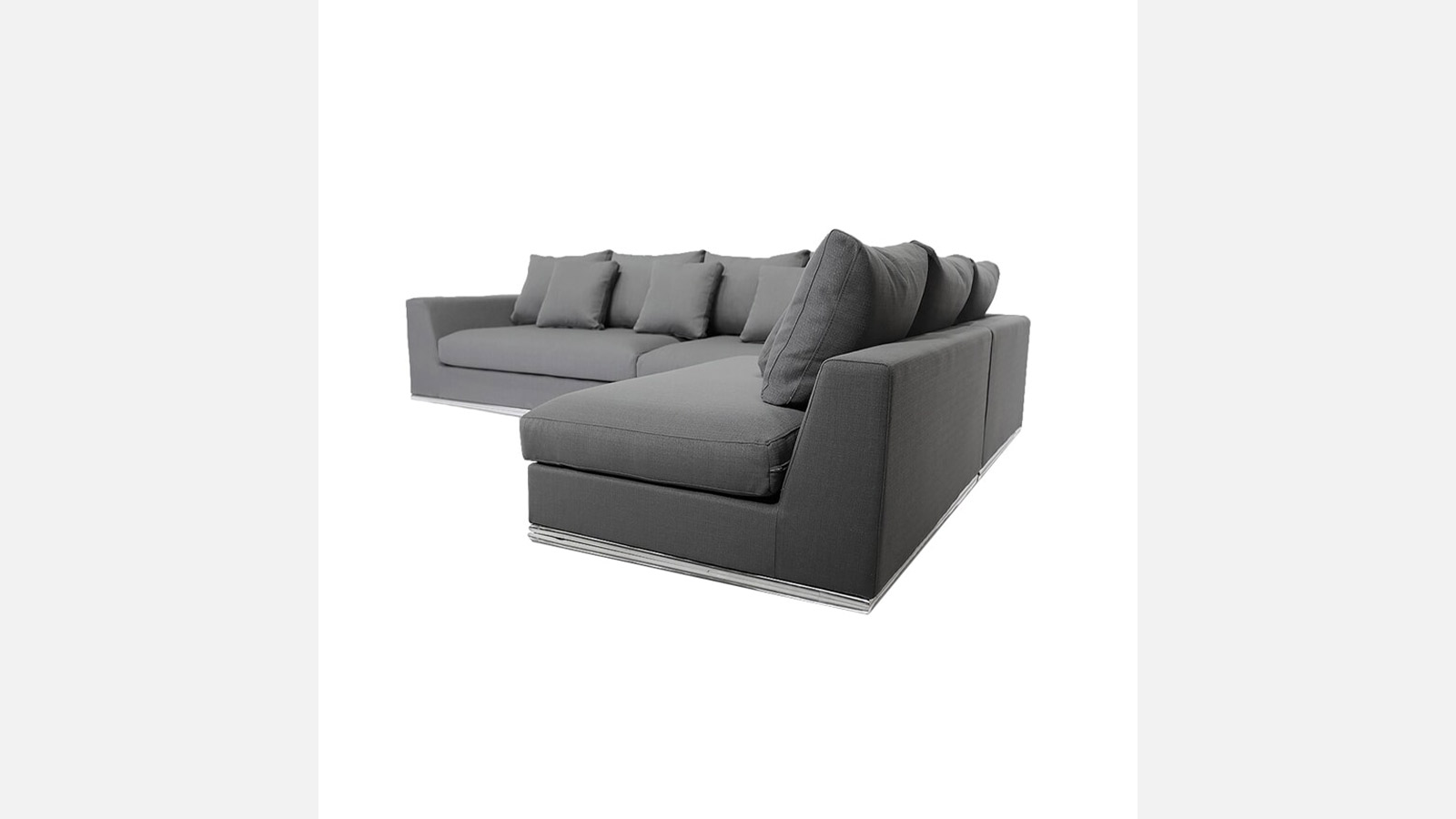 The Grigio Sofa (left chaise) features an ergonomic detachable seating, stain resistant fabric and an eye-catching chrome base. Perfect for Residential as it can be paired with different styles.