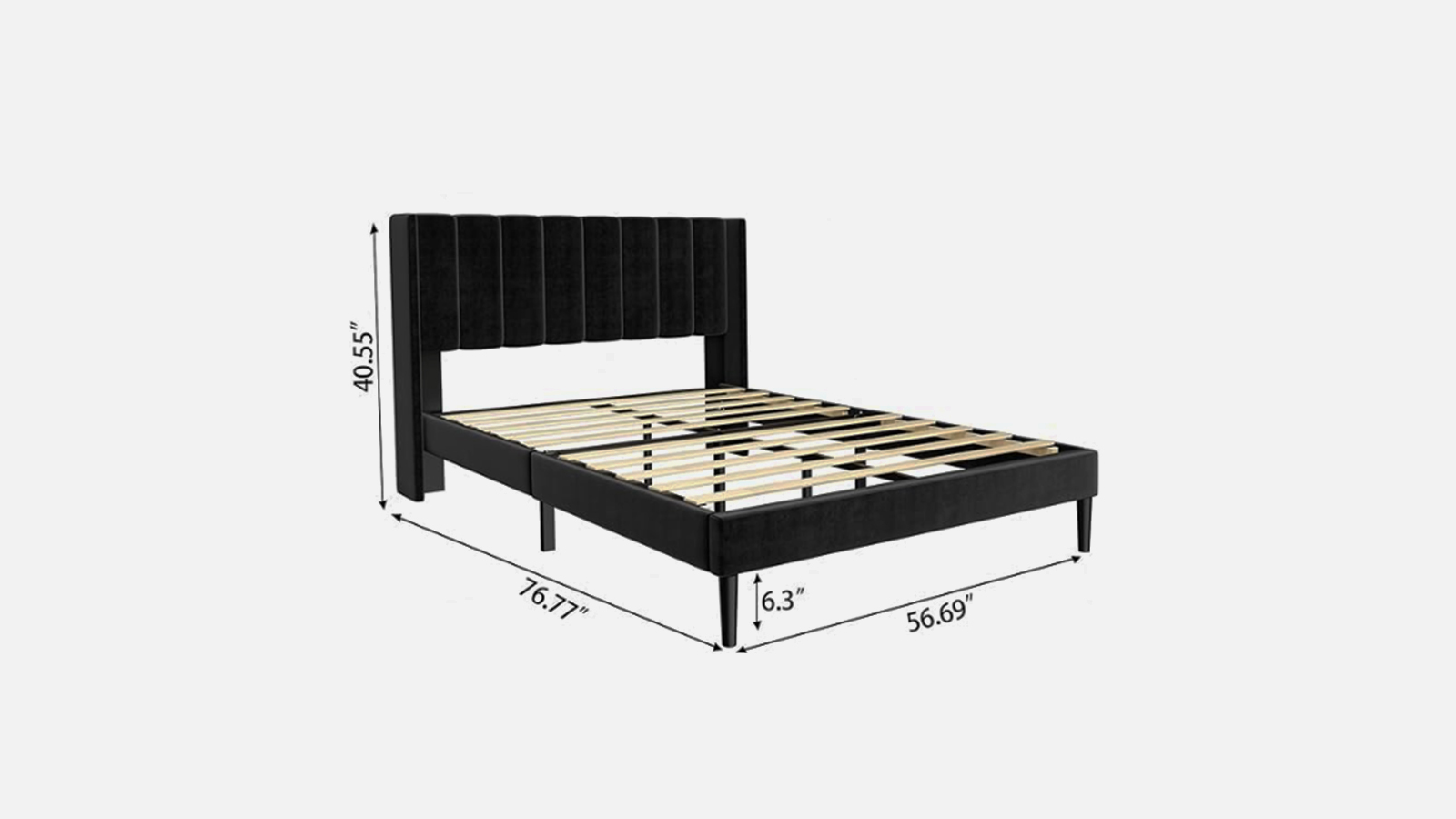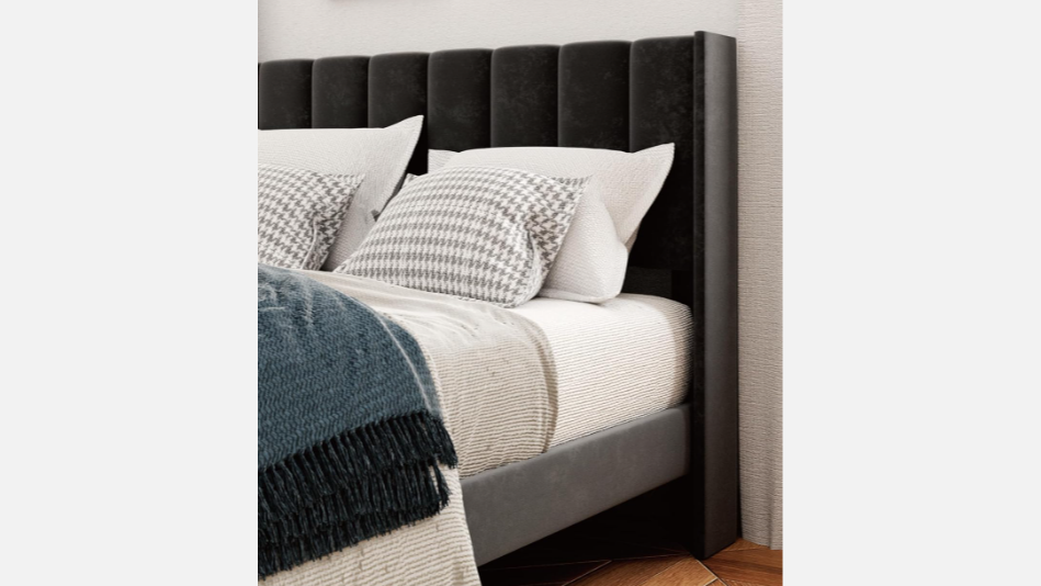 Our Midnight Full Bed is a luxurious full-sized bed wrapped in rich dark gray velvet upholstery. Its smooth, elegant design brings a touch of sophistication and comfort to any bedroom.